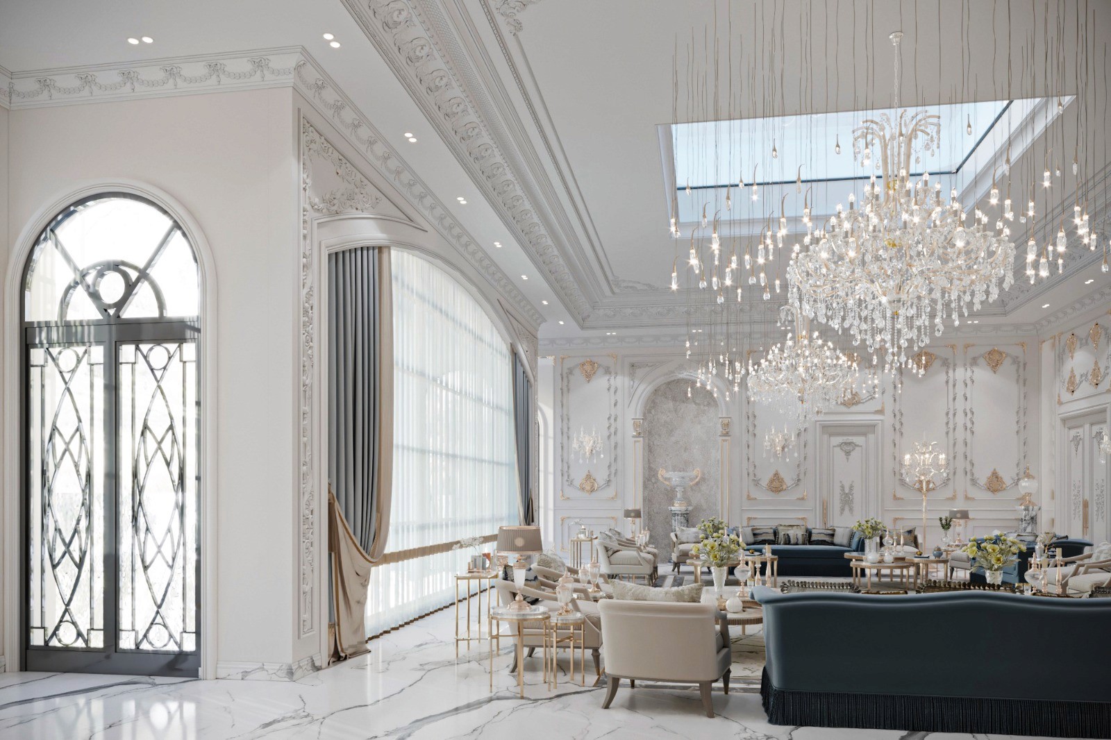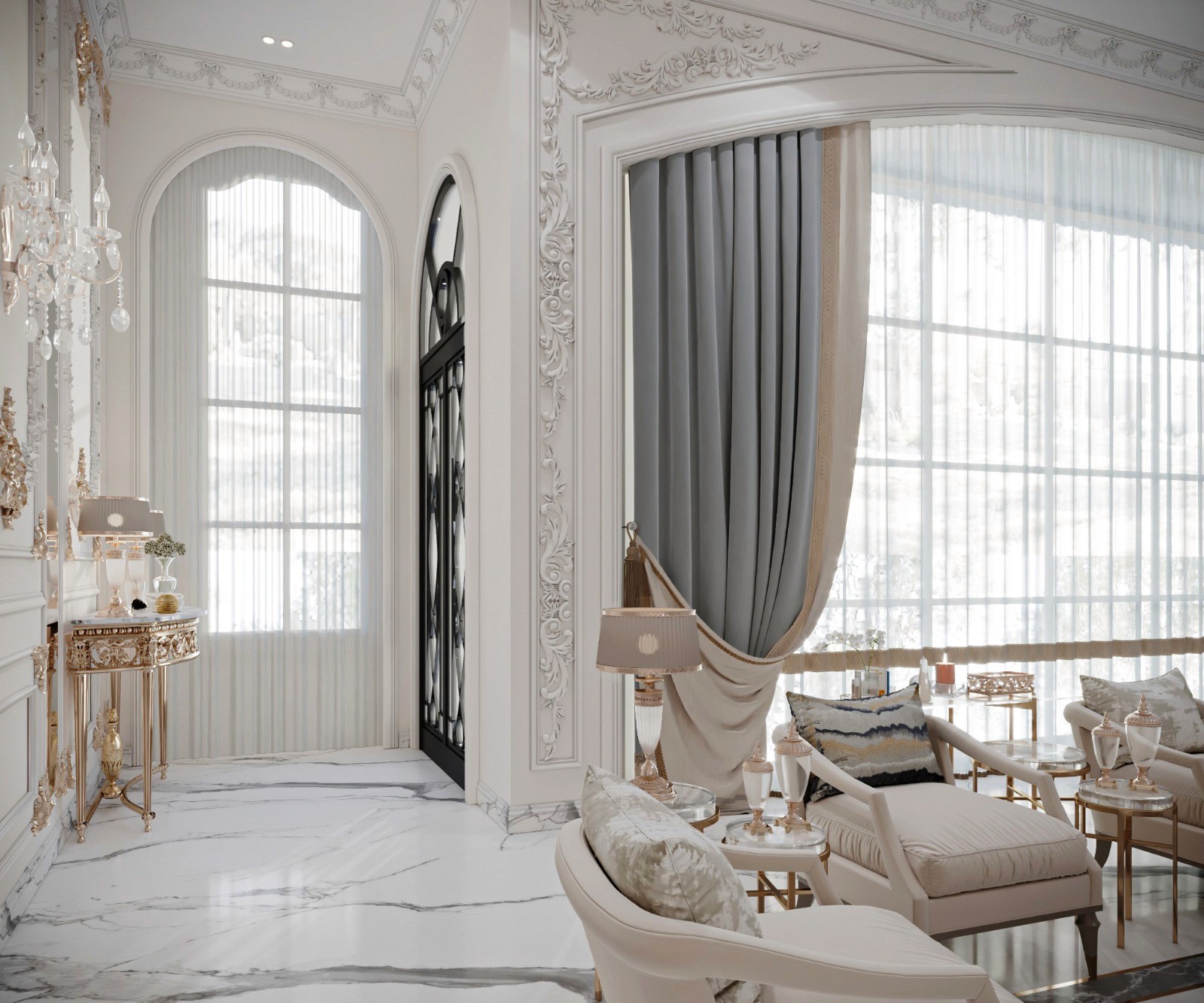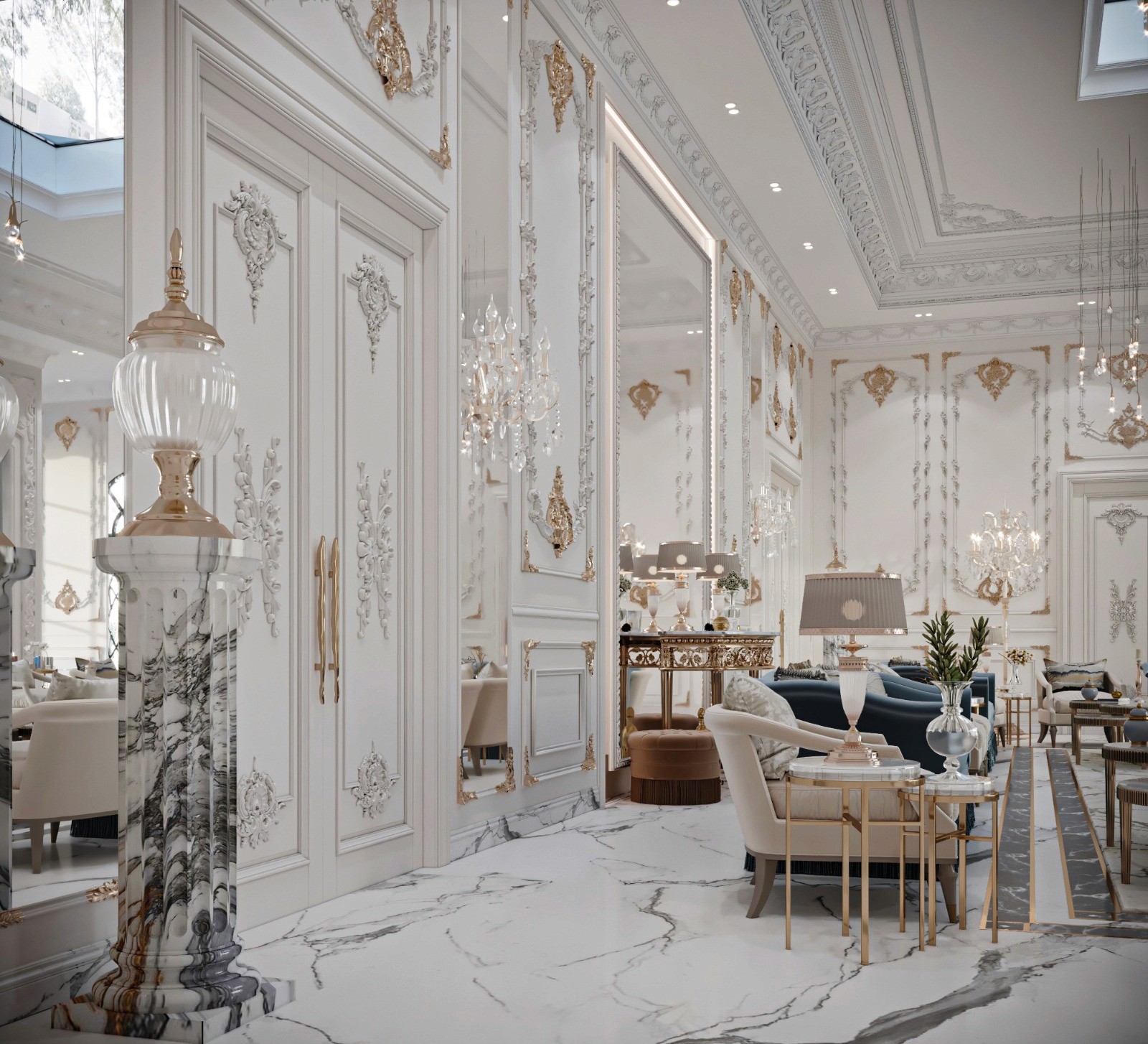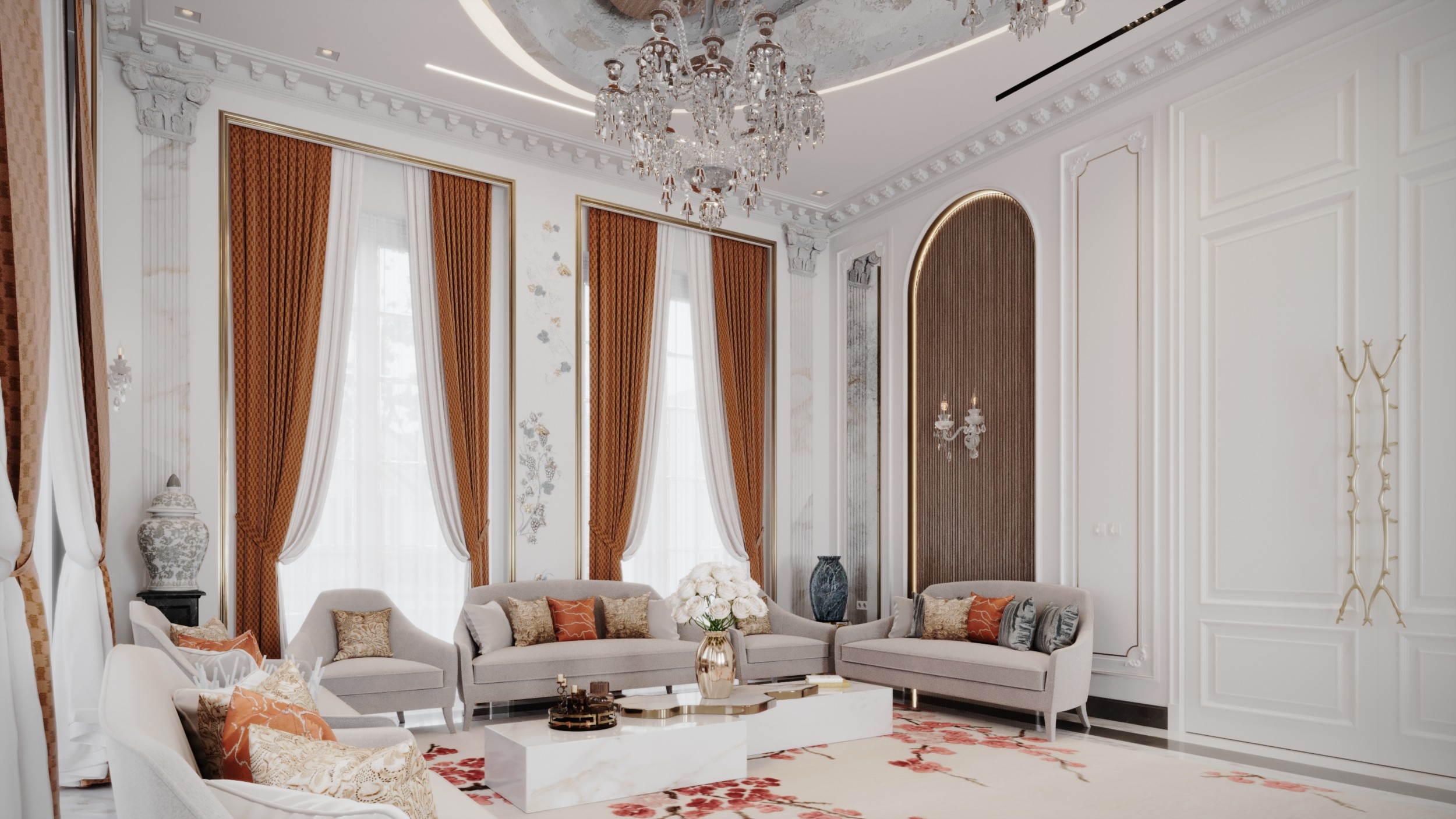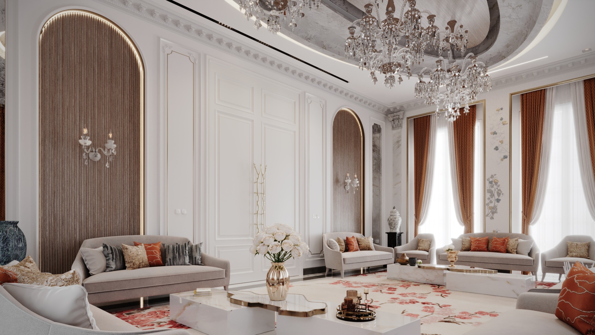 The Crown Residence is a sprawling, ultra-luxurious home thoughtfully designed for both privacy and grandeur. From the penthouse living area to multiple specialized bedrooms, salons, and majlises, each space is tailored to its function with meticulous attention to detail.