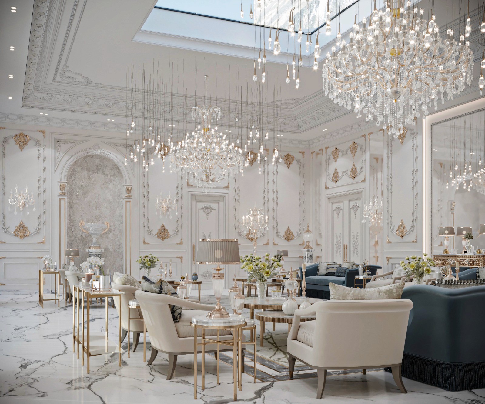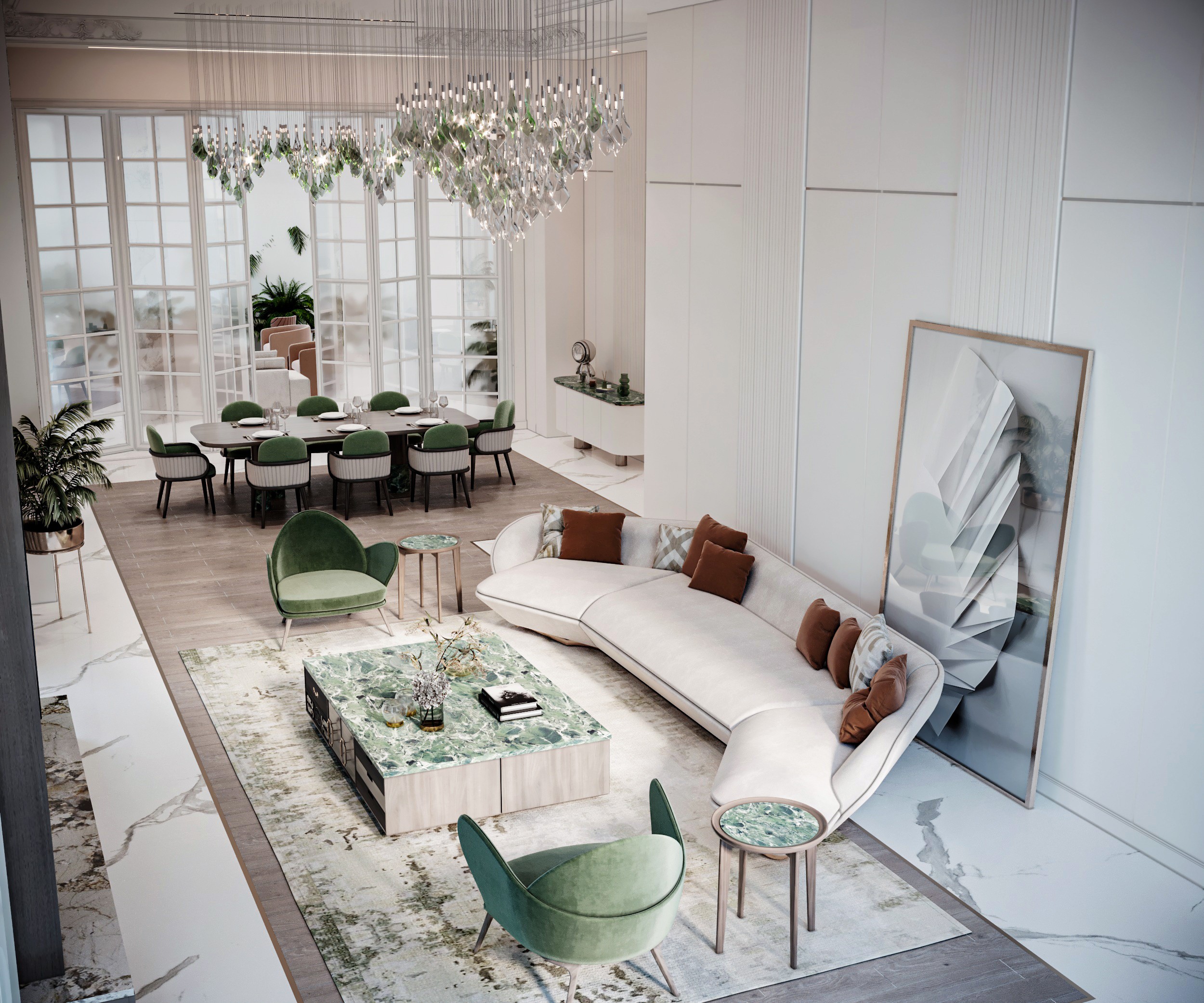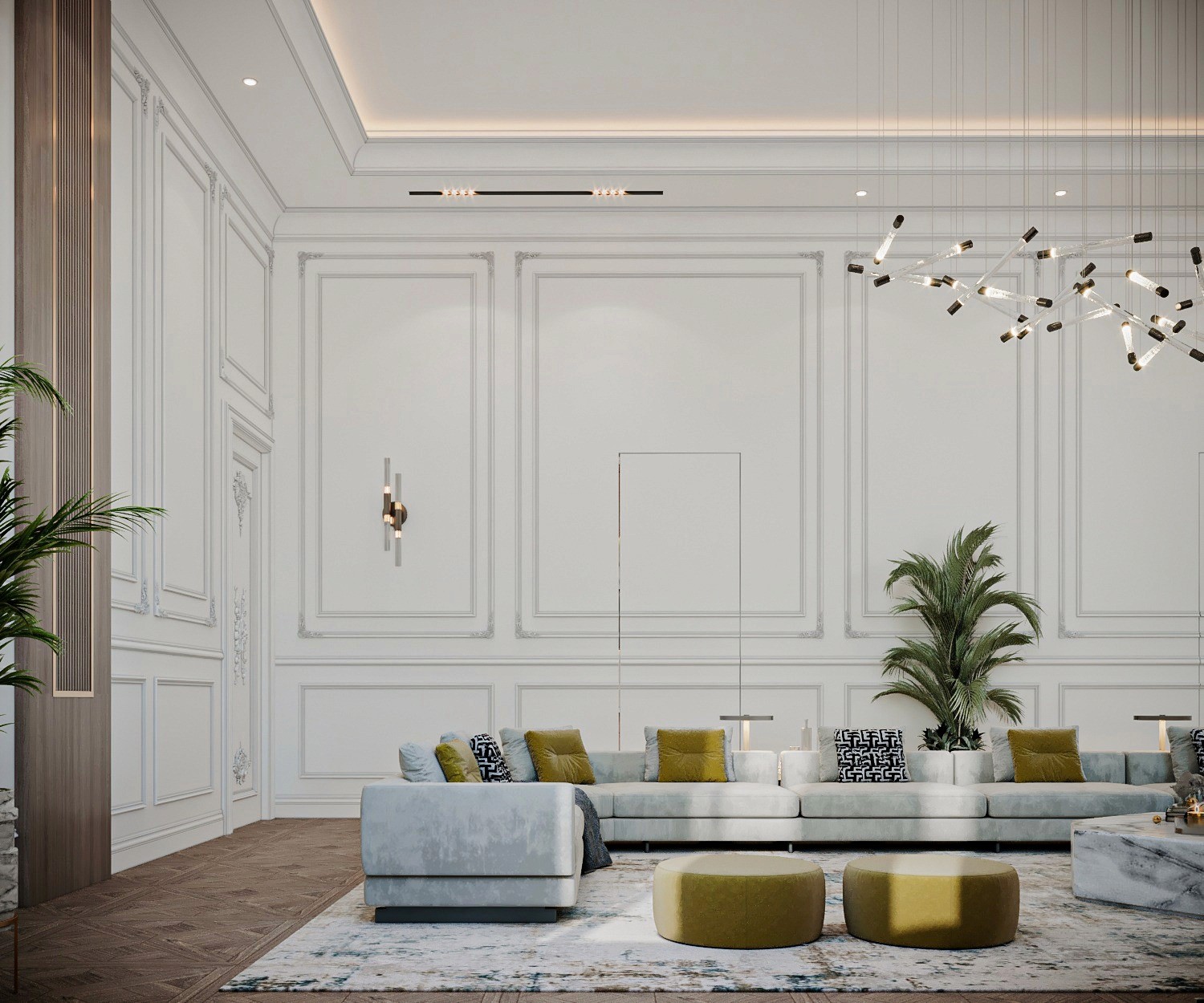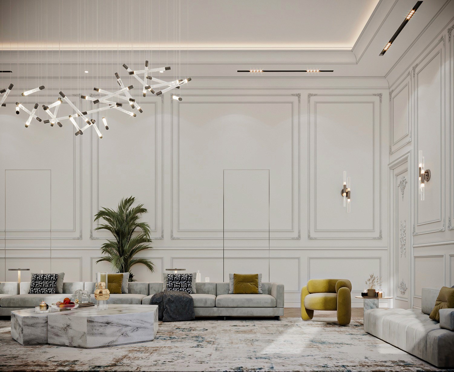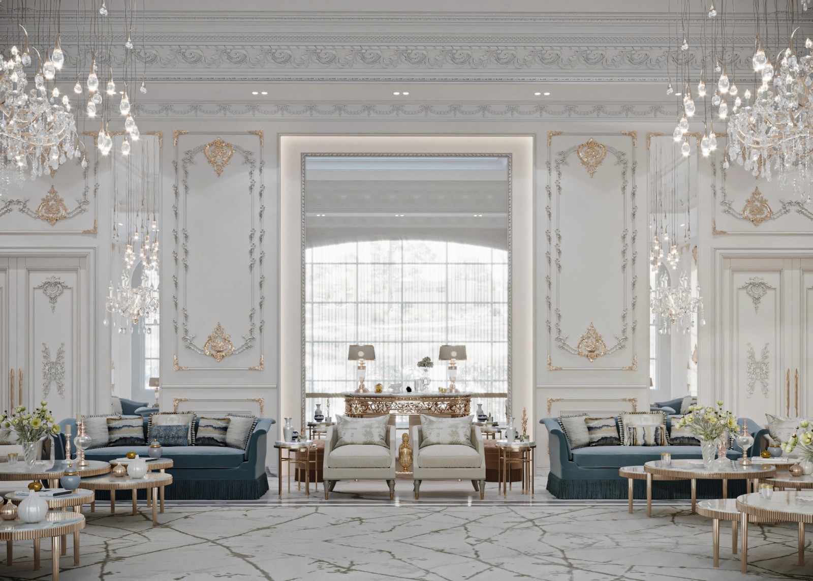 The Crown Residence is a sprawling, ultra-luxurious home thoughtfully designed for both privacy and grandeur. From the penthouse living area to multiple specialized bedrooms, salons, and majlises, each space is tailored to its function with meticulous attention to detail.