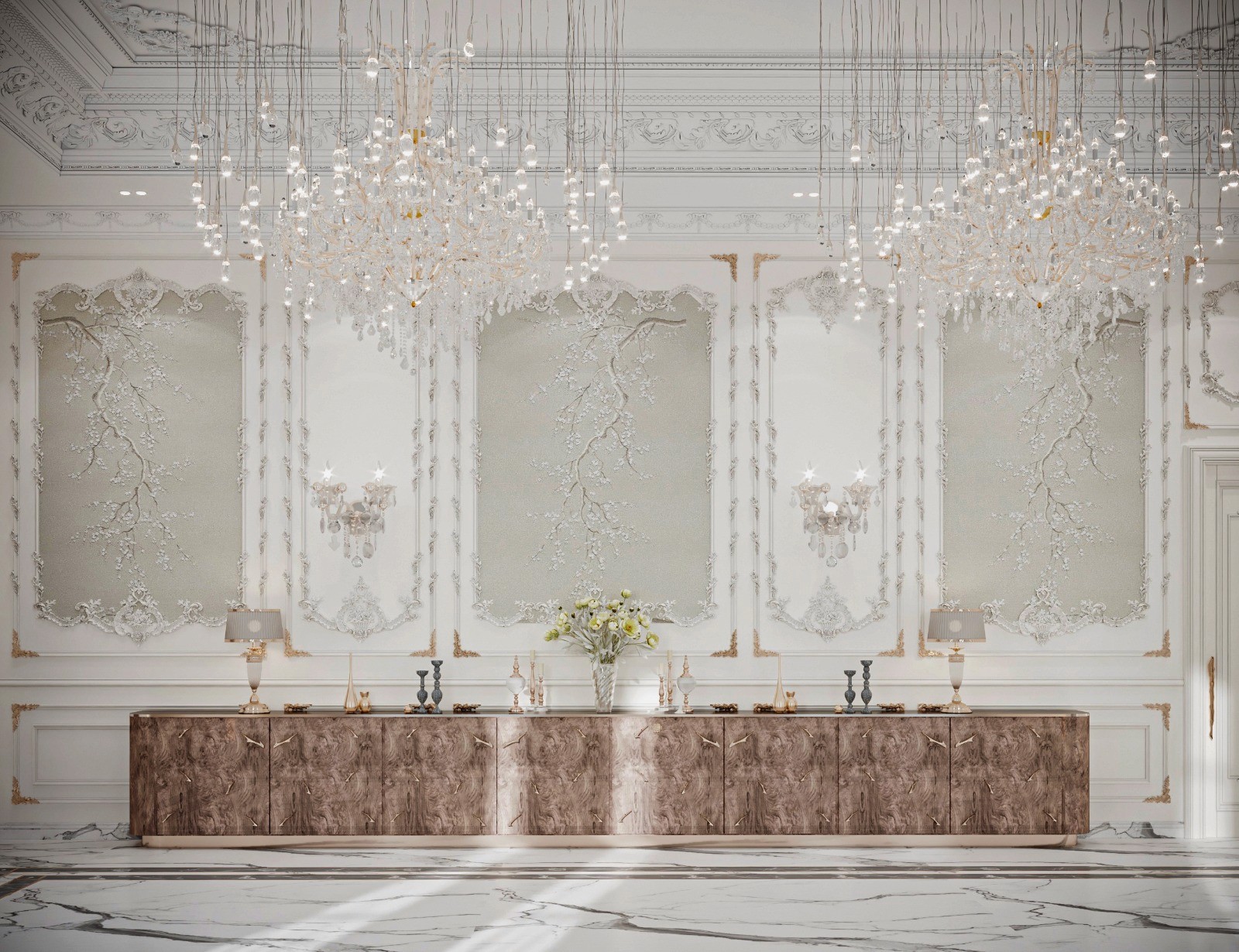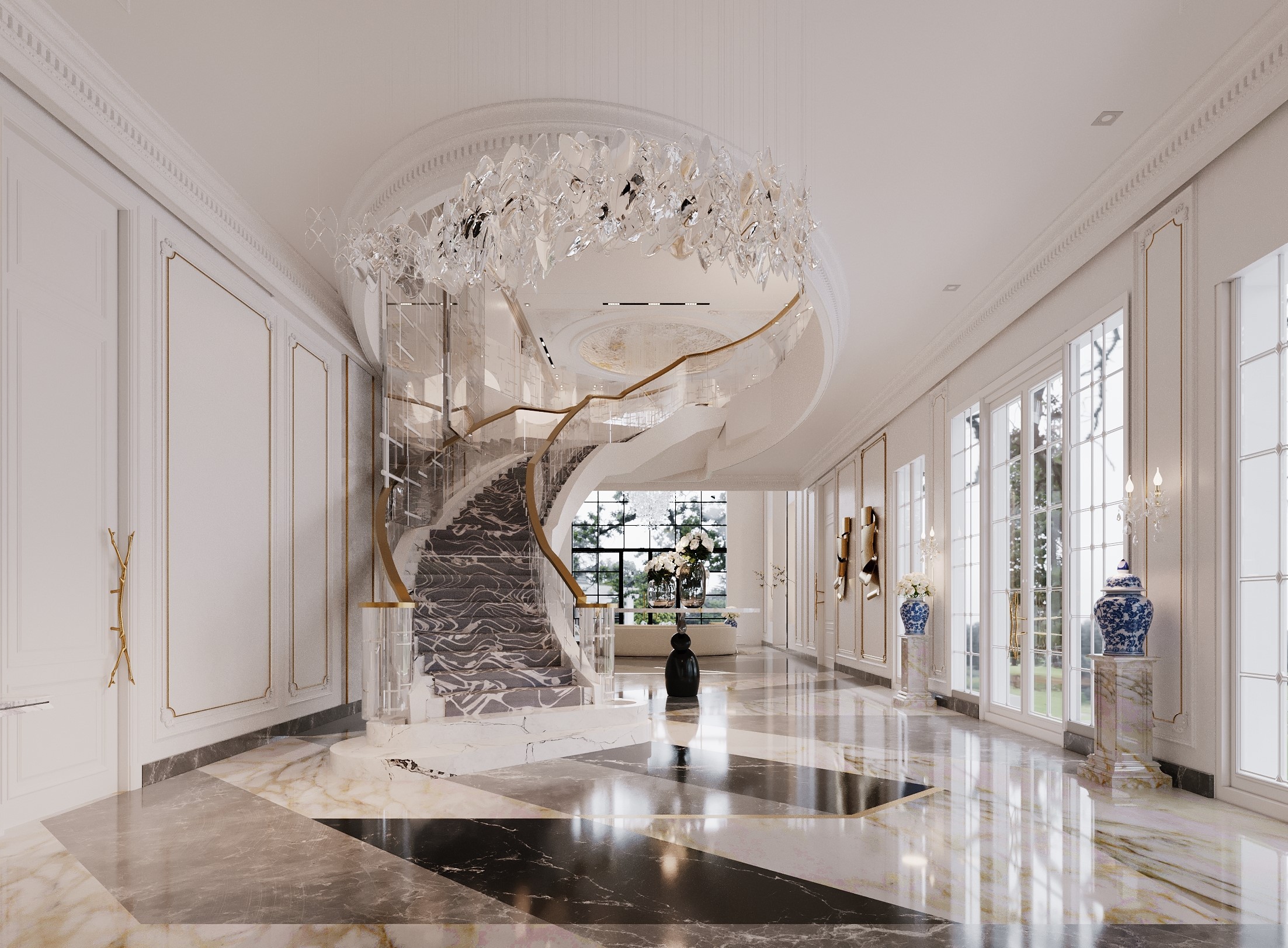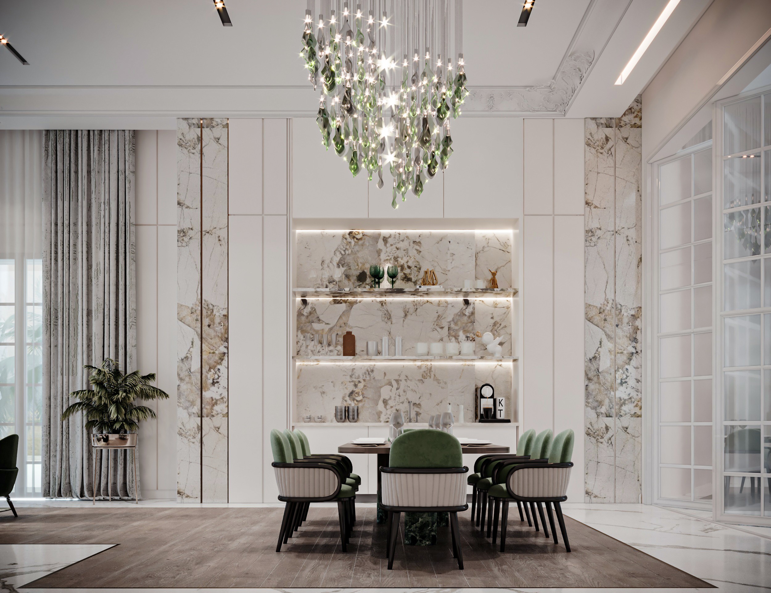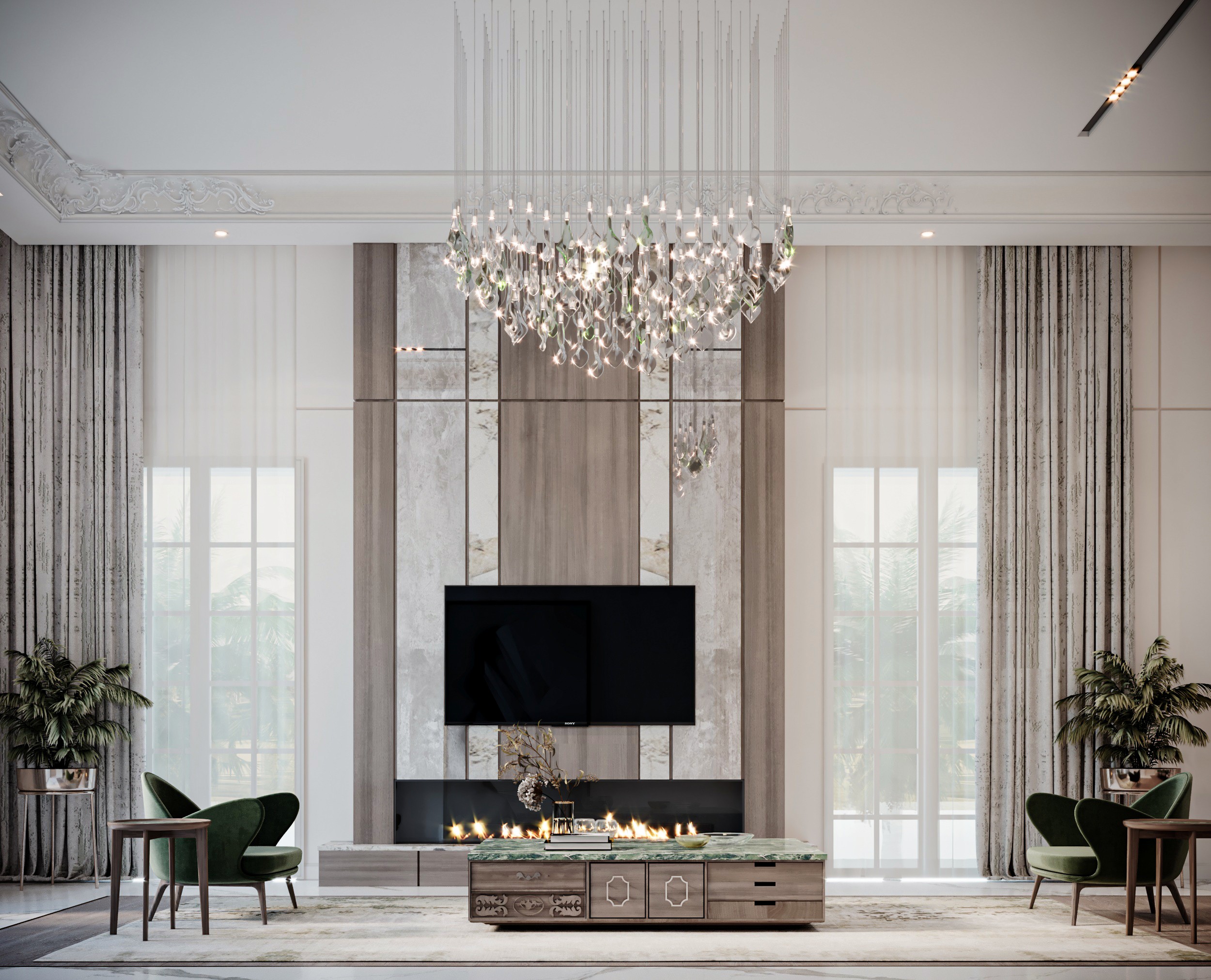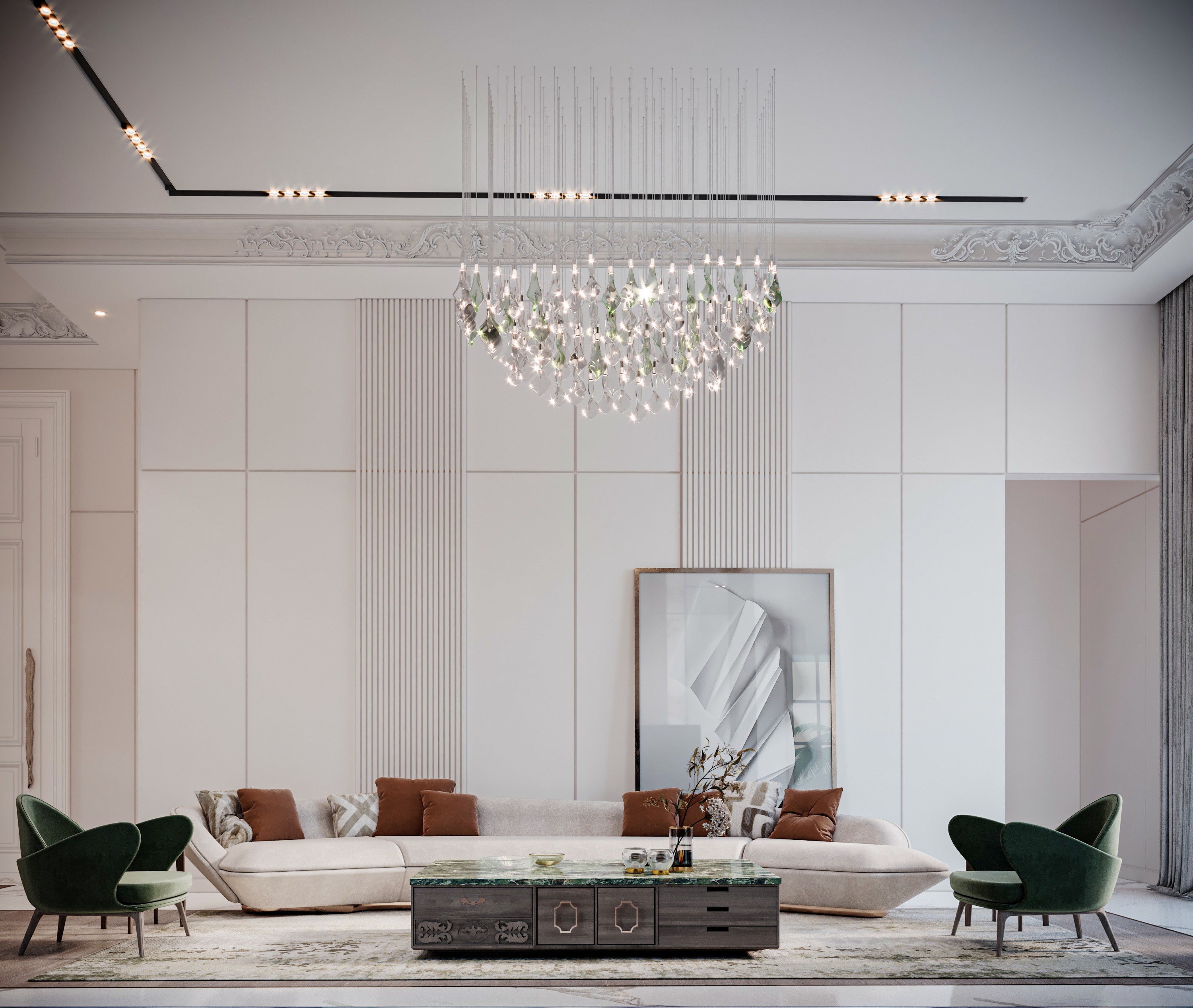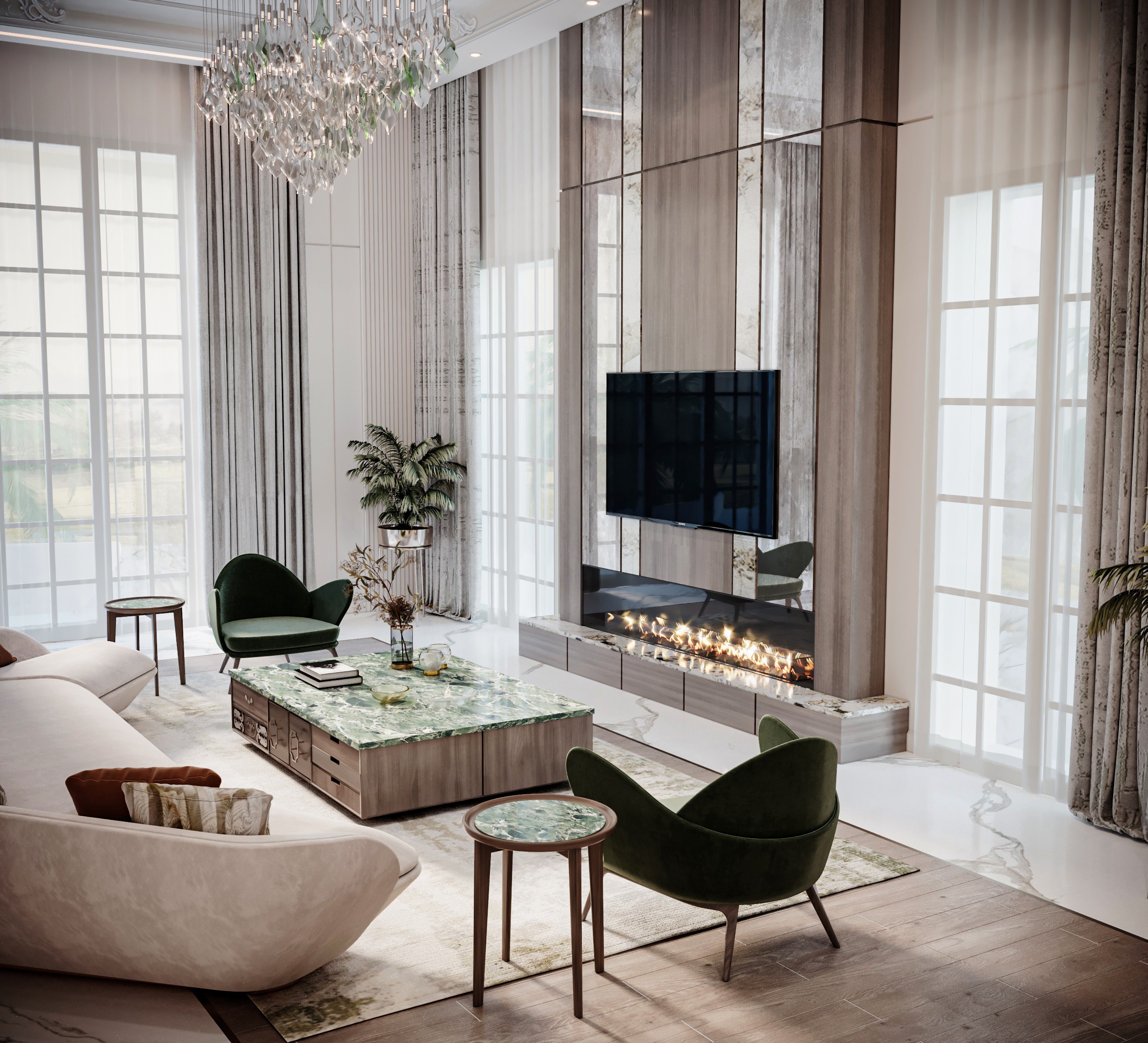 The Crown Residence is a sprawling, ultra-luxurious home thoughtfully designed for both privacy and grandeur. From the penthouse living area to multiple specialized bedrooms, salons, and majlises, each space is tailored to its function with meticulous attention to detail.