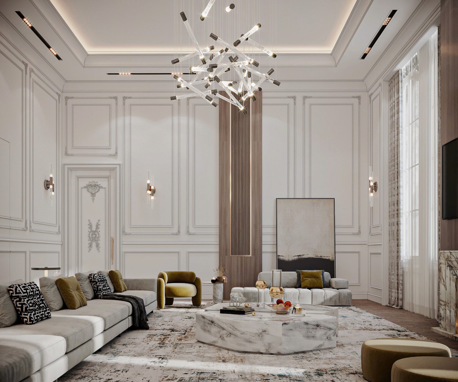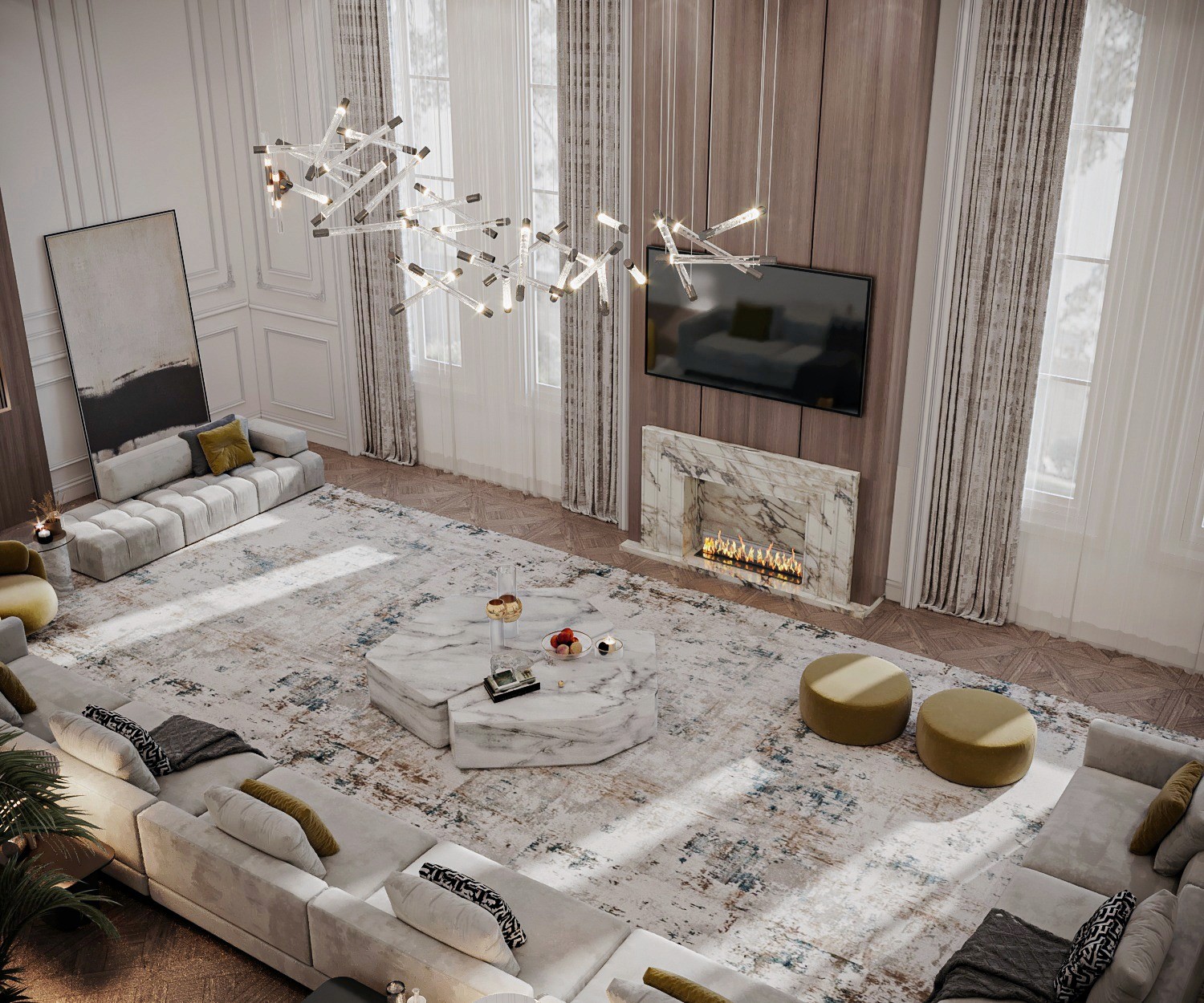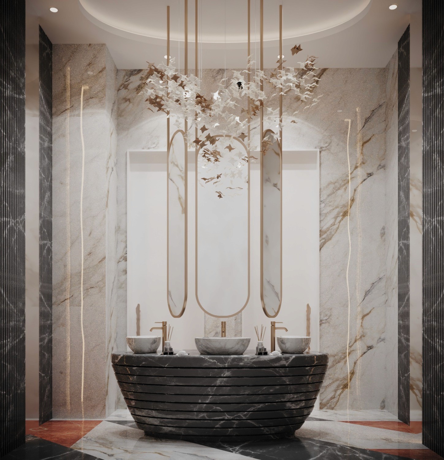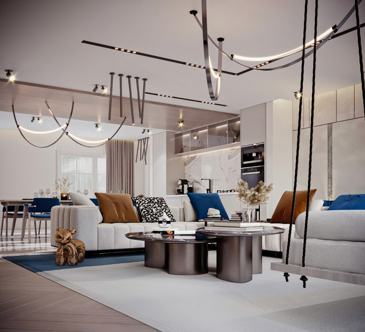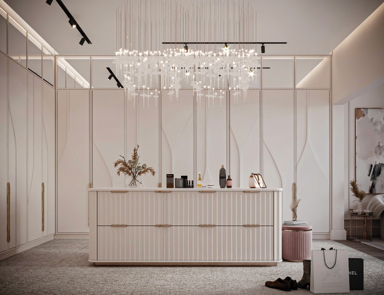 The Crown Residence is a sprawling, ultra-luxurious home thoughtfully designed for both privacy and grandeur. From the penthouse living area to multiple specialized bedrooms, salons, and majlises, each space is tailored to its function with meticulous attention to detail.