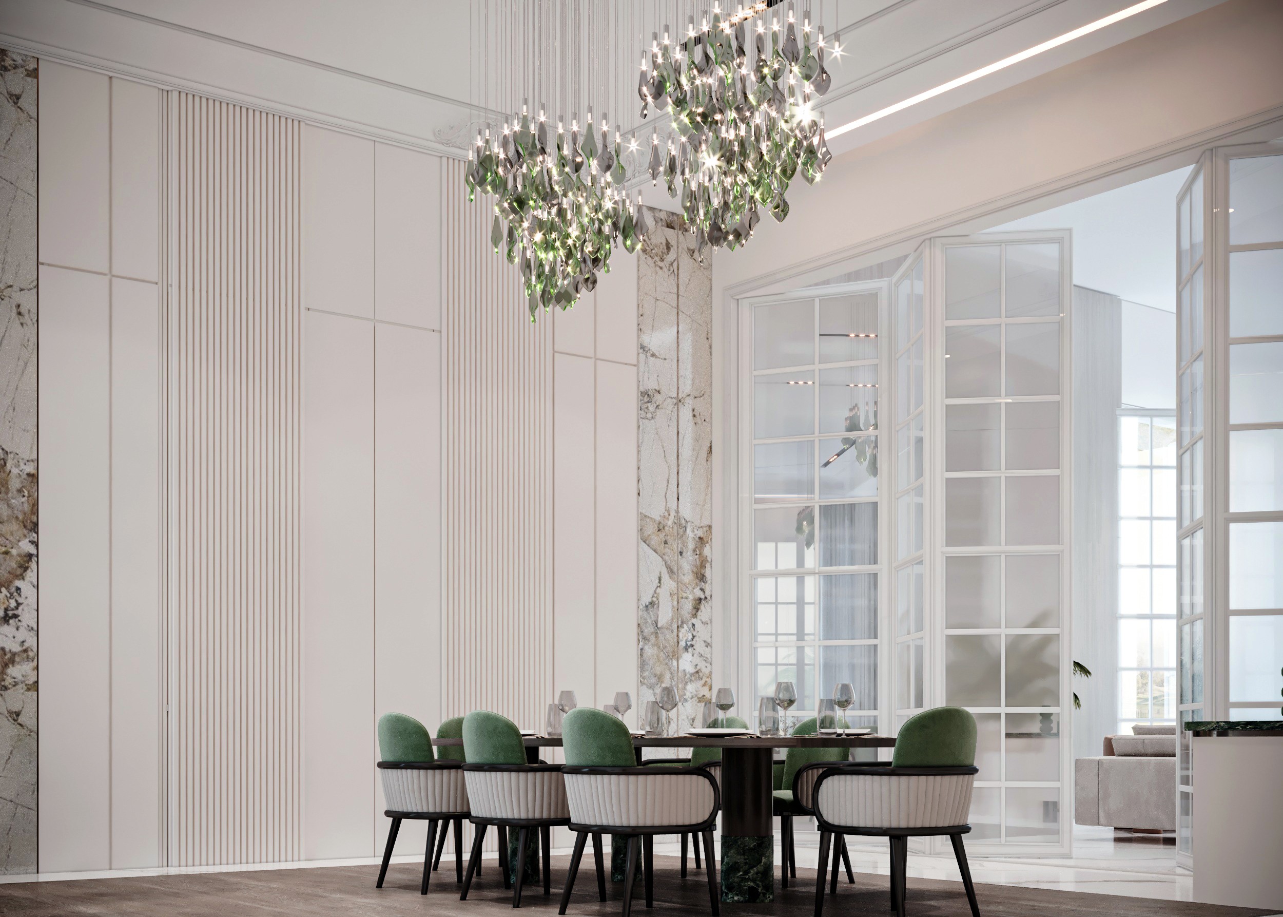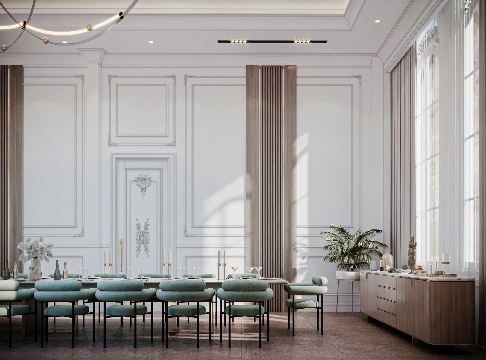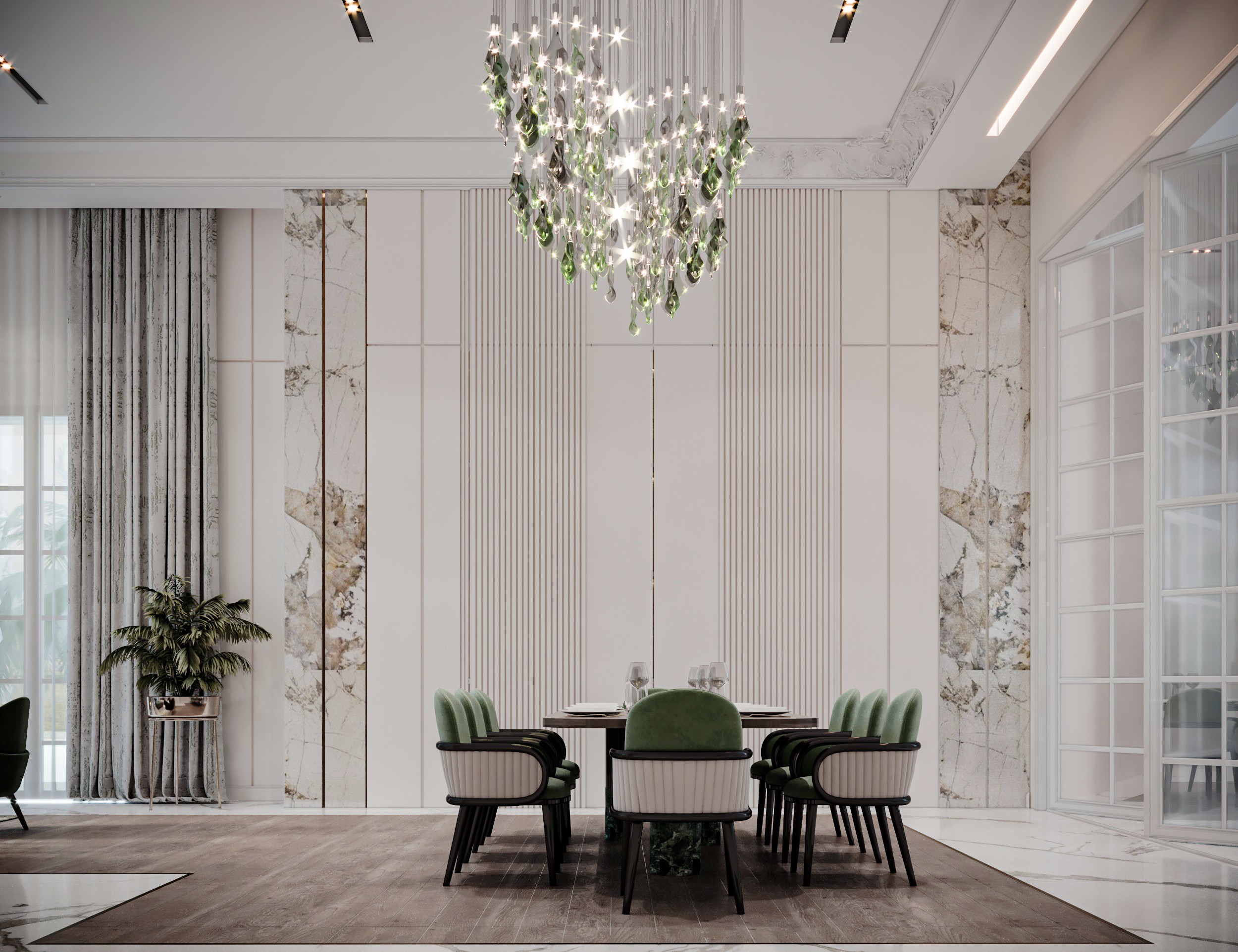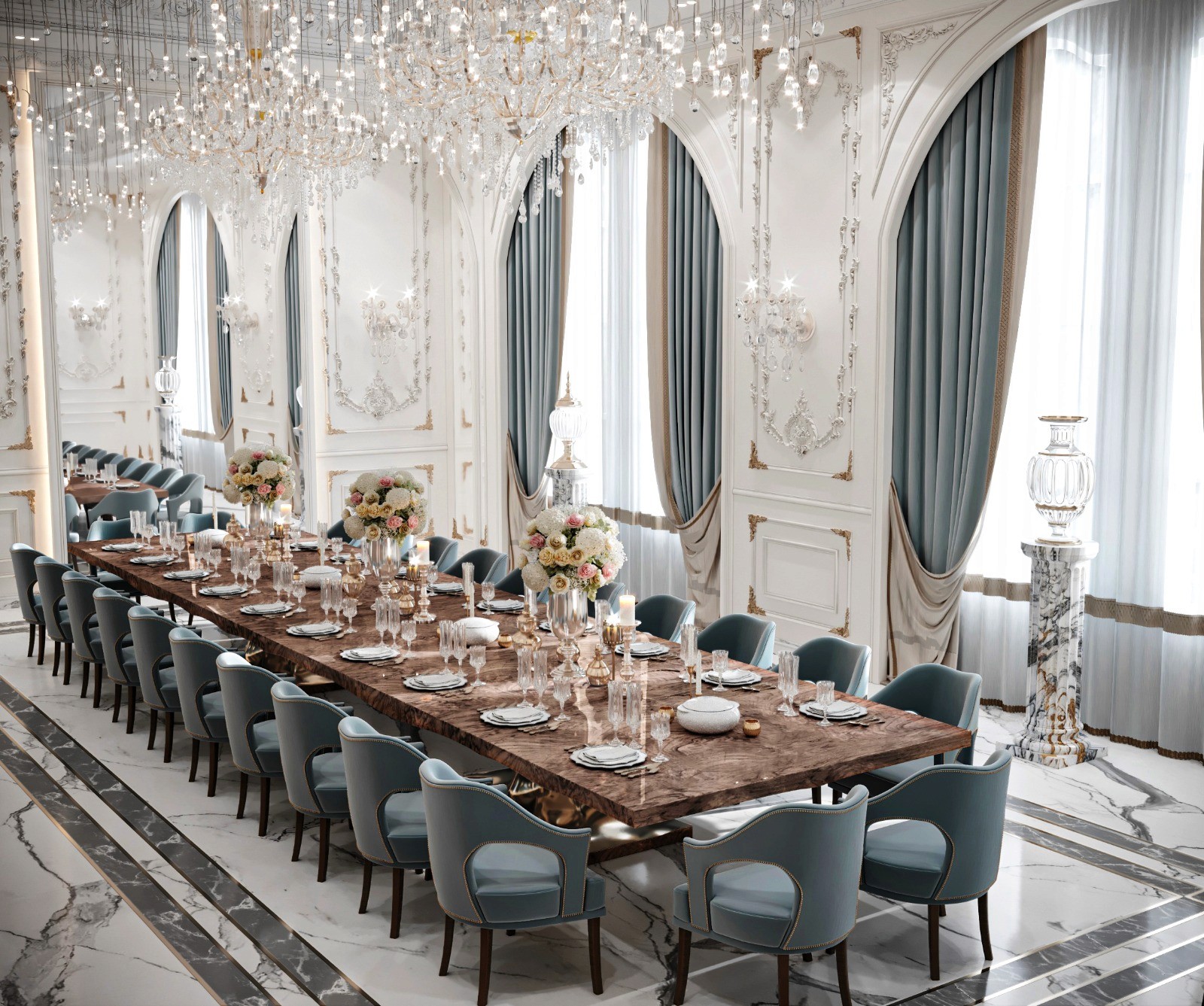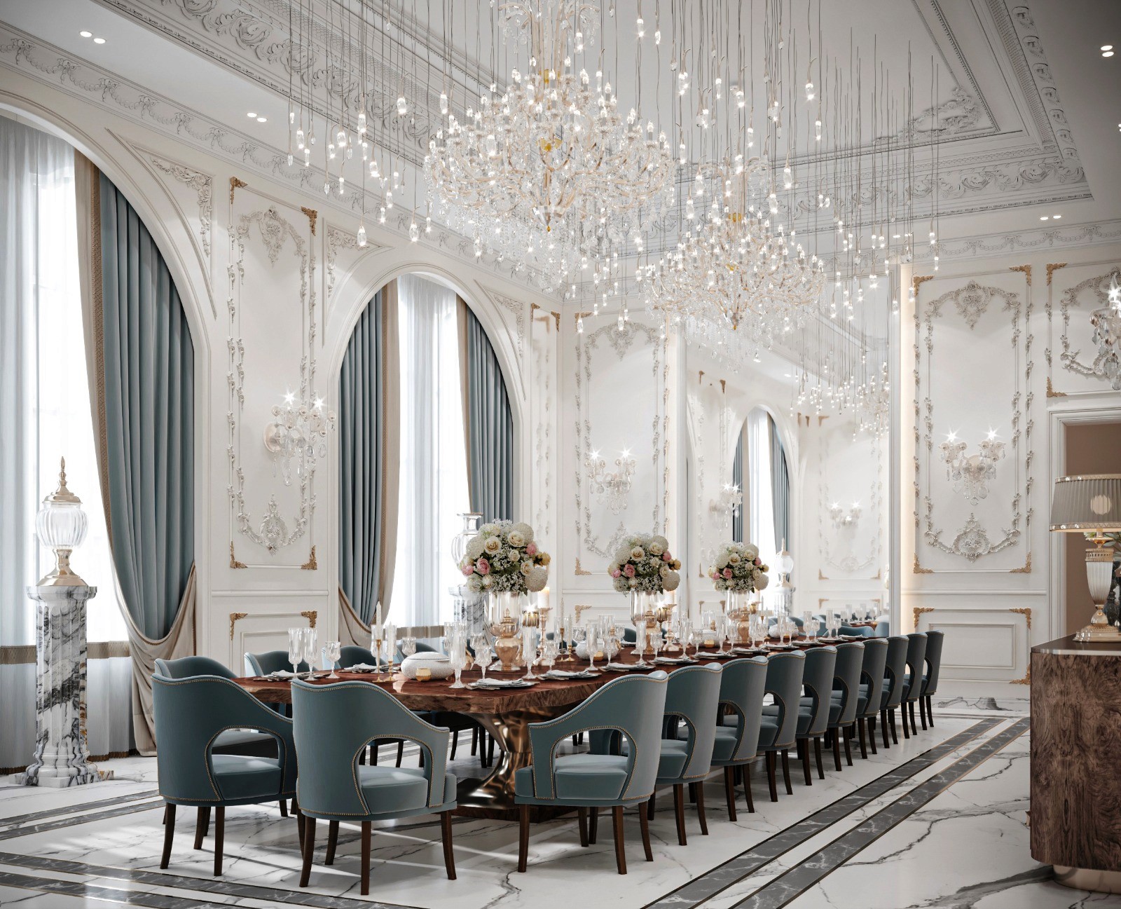 The Crown Residence is a sprawling, ultra-luxurious home thoughtfully designed for both privacy and grandeur. From the penthouse living area to multiple specialized bedrooms, salons, and majlises, each space is tailored to its function with meticulous attention to detail.